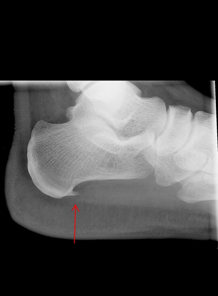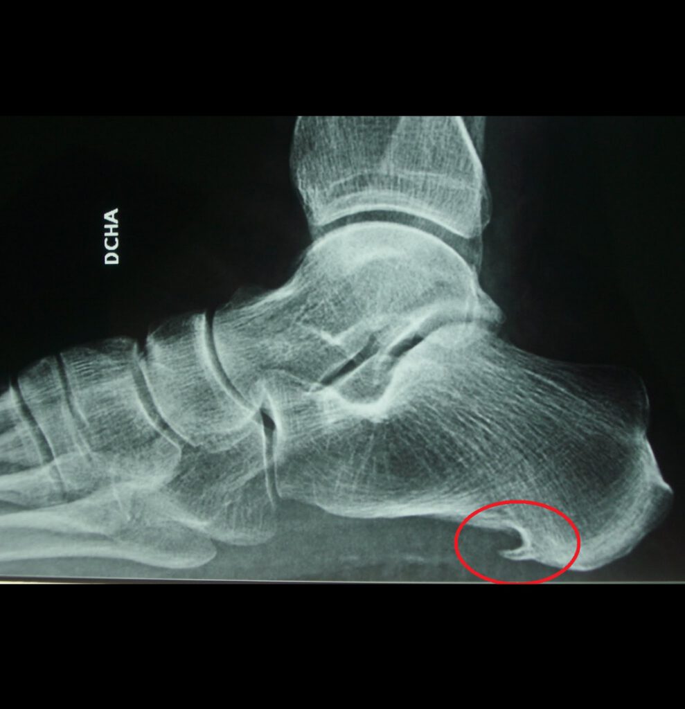 En una radiografía es frecuente observar el espolón, aunque no siempre es el tamaño del espolón lo que determina el dolor, sino la inflamación y degeneración de los tejidos que lo rodean.